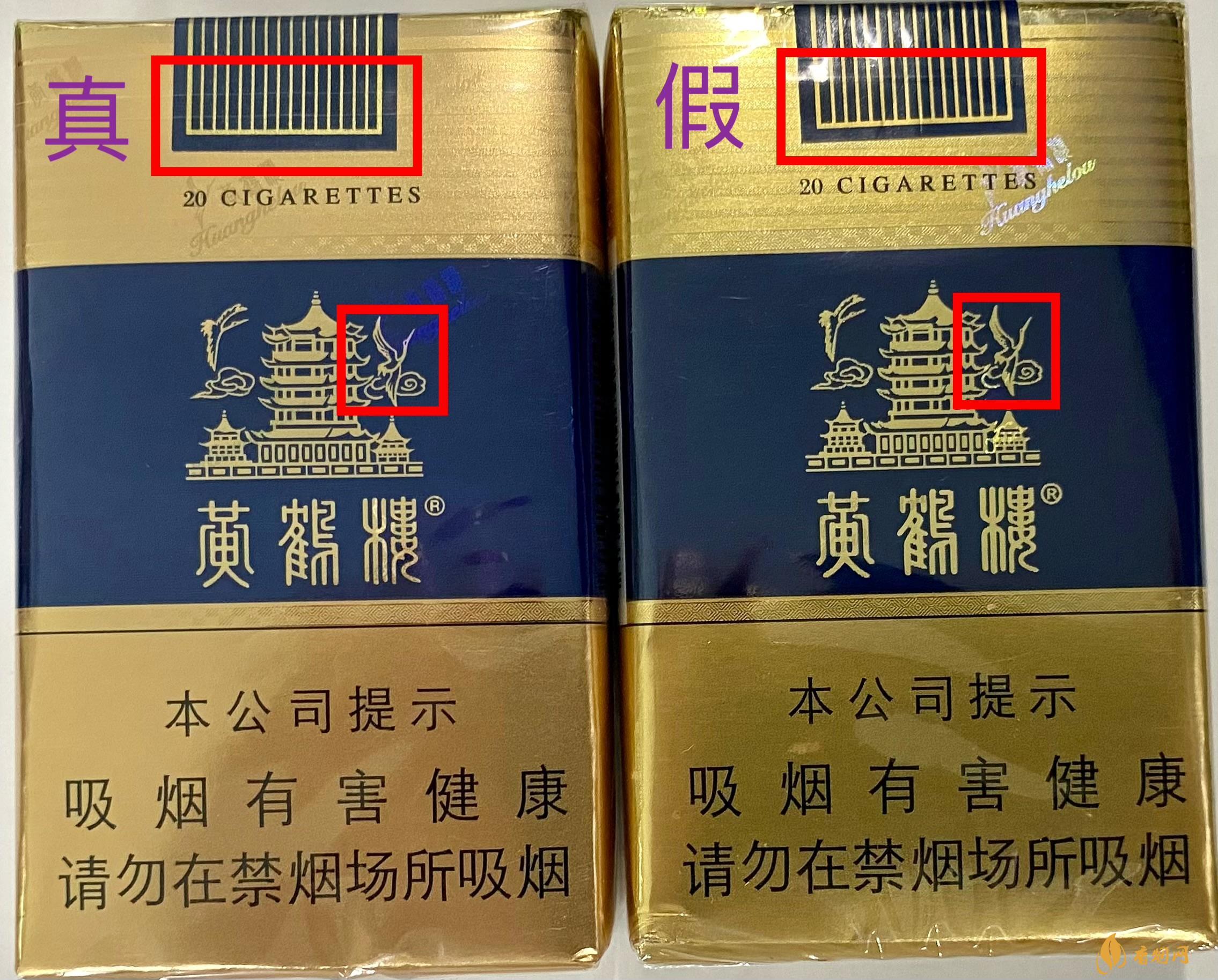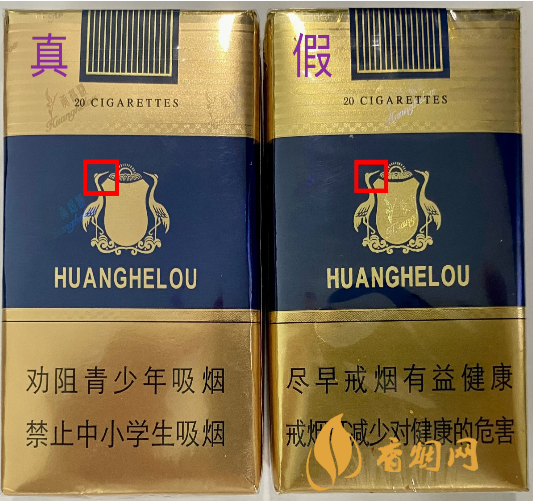 商標(biāo)紙背面對(duì)比:從背面看真煙小盒背面的“仙鶴”圖案,頭頂小半圓狀的“鶴冠”與“鶴頂”是分開的;假煙往往是連在一起。