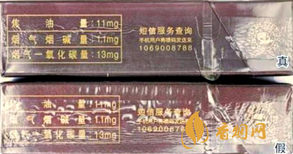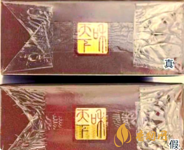 真品商標(biāo)紙采用復(fù)合鐳射銀卡紙,膠印和絲網(wǎng)印刷,“和天下”字體采用壓凸?fàn)C金工藝,用手摸凹凸感較明顯,且字體筆畫(huà)較粗,商標(biāo)紙上字體、拼音、花紋看上去有較清晰的豎線(xiàn);假煙采用高清掃描仿制印刷,“和天下”字體用手摸凹凸感不明顯,且字體筆畫(huà)較細(xì),商標(biāo)紙上拼音、花紋等處豎線(xiàn)較模糊,與真品特征存在明顯差異。