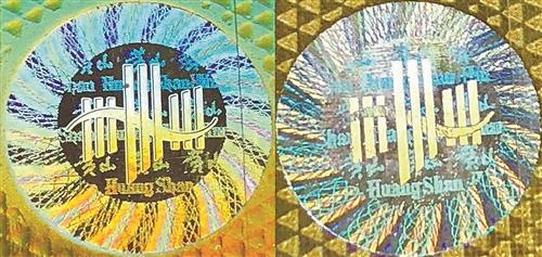 真假:小盒防偽標(biāo)識(shí)對比:真品卷煙防偽標(biāo)識(shí)采用激光全息防偽技術(shù),不同角度呈現(xiàn)的圖文線條清晰、立體感強(qiáng)。假冒卷煙防偽標(biāo)識(shí)系偽造,變換角度呈現(xiàn)的圖文線條模糊、立體感不強(qiáng)。
