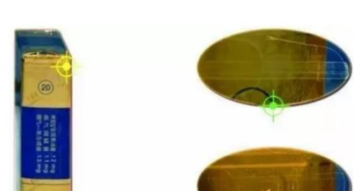 真品黃鶴樓軟藍(lán)香煙的拉絲有麻點(diǎn)(絲網(wǎng)狀的膠水痕跡),拉絲頭相對(duì)光滑規(guī)則;假煙的拉絲沒(méi)有麻點(diǎn),拉絲頭相對(duì)不規(guī)則,圓的半徑偏大。(左為真;右為假)