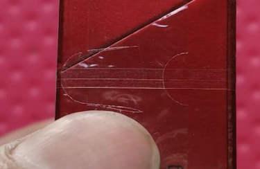 第三步:看紅旗渠(黃金葉)牌香煙的最外面的透明包裝紙。在開(kāi)封處的可以清楚的看到刀鋒留下的痕跡,開(kāi)封時(shí)應(yīng)該是輕松的將透明包裝撕開(kāi),撕開(kāi)后的包裝的包裝條應(yīng)該是很整齊的邊。