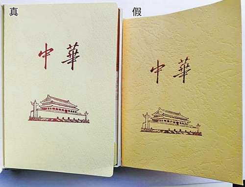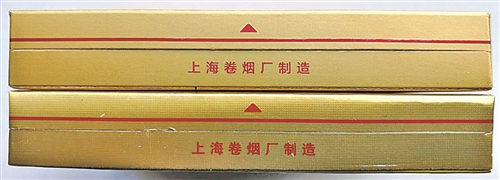 正面商標(biāo)紙印刷工藝差異對(duì)比:真煙商標(biāo)紙采用壓凸?fàn)C金工藝,中間天安門圖案用手摸凹凸感明顯,且天安門城墻上有細(xì)密的橫線條;假煙采用高清掃描仿制印刷,中間天安門圖案用手摸凹凸感不明顯,且天安門城墻上沒有橫線條。