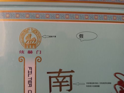 假煙右上角獅子圖標(biāo)模糊不清,字體有毛刺。