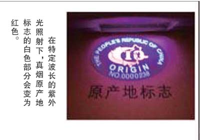 此外,真品“中華”應(yīng)用DNA防偽技術(shù),在特定波長的紫外光照射下,原產(chǎn)地標(biāo)志的白色部分會變?yōu)榧t色,而假煙不會變色。