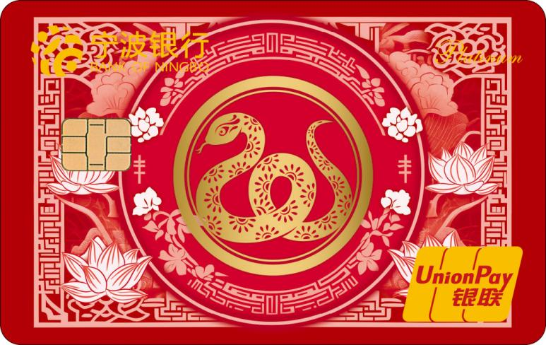 蛇年生肖白金卡是寧波銀行以“金蛇獻(xiàn)瑞,開(kāi)卡有?!睘橹黝}在蛇年發(fā)行的白金借記卡,共推出“典雅版”和“萌趣版”兩款。“典雅版”設(shè)計(jì)運(yùn)用中國(guó)傳統(tǒng)剪紙手法設(shè)計(jì),金色生肖蛇圖案盤(pán)繞在繁花似錦的蓮花中,透過(guò)花窗之美,盡顯活色生香的古色風(fēng)韻?!懊热ぐ妗币钥ㄍㄉ邽榛{(diào),三維立體的造型搭配春節(jié)喜慶色調(diào)以及元寶金幣的元素,象征著財(cái)富和收獲??ㄆ哂袃?chǔ)蓄、轉(zhuǎn)賬結(jié)算、購(gòu)物消費(fèi)、代收代付、個(gè)人理財(cái)、電話(huà)銀行等多種功能。