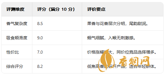 煙氣質(zhì)感:煙霧顆粒感極弱,入喉無灼燒感,適合中輕度煙民。