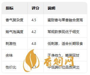基于香氣復(fù)雜度、煙氣飽滿度、刺激性、余味表現(xiàn)及性價比,采用5分制進(jìn)行評分: