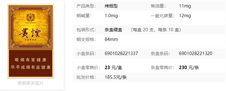 單盒參考價(jià):23;條盒參考價(jià):230;批發(fā)價(jià)格:185.5元/條
