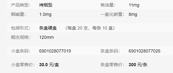 卷煙條碼:6901028077019