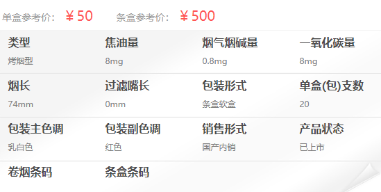 單盒參考價(jià): ¥50 條盒參考價(jià): ¥500