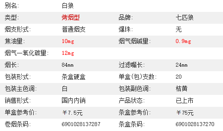 【七匹狼白狼多少錢一包 七匹狼白盒香煙價格表圖片大全】相關(guān)推薦文章: