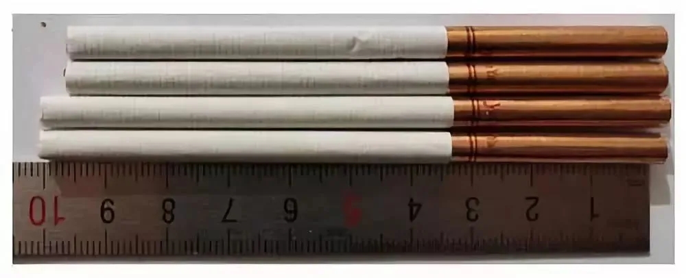 真品卷煙:煙支長度為100mm,濾嘴處有四排激光預(yù)打孔,打孔透氣度好。卷煙紙顏色白,手摸煙支飽滿緊實,搭扣處結(jié)合完美。煙絲呈現(xiàn)絲條狀,色澤基本一致。
