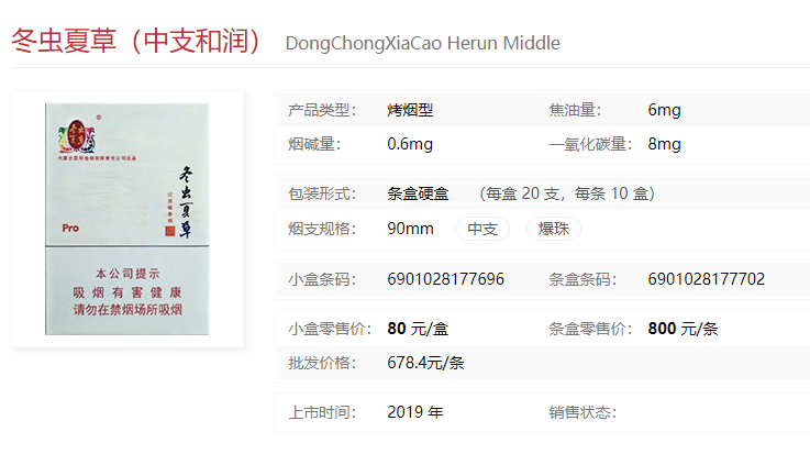 冬蟲(chóng)夏草和潤(rùn)中支多少一盒 冬蟲(chóng)夏草香煙和潤(rùn)中支圖片及報(bào)價(jià)一覽