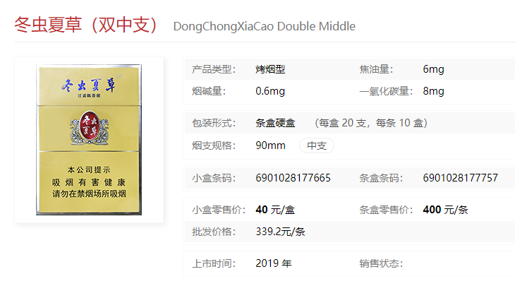 【冬蟲(chóng)夏草香煙中支什么價(jià) 2021冬蟲(chóng)夏草香煙中支圖片及報(bào)價(jià)】相關(guān)推薦文章: