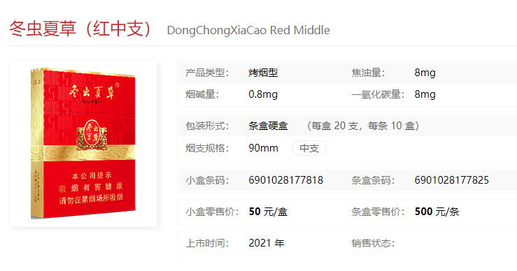 冬蟲(chóng)夏草紅中支什么價(jià) 冬蟲(chóng)夏草紅中支香煙價(jià)格查詢(xún)