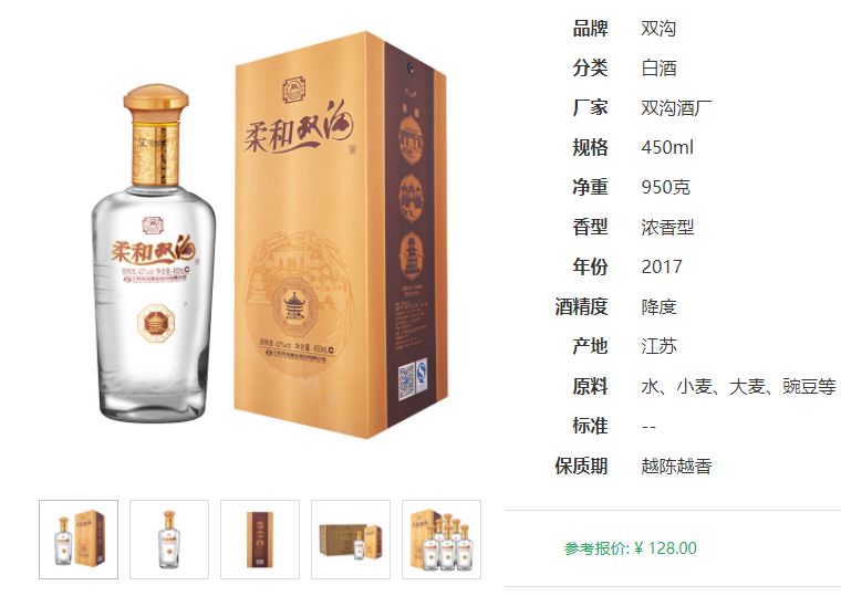 雙溝酒2017年產(chǎn)金柔和42度多少錢(qián)一瓶零售價(jià)