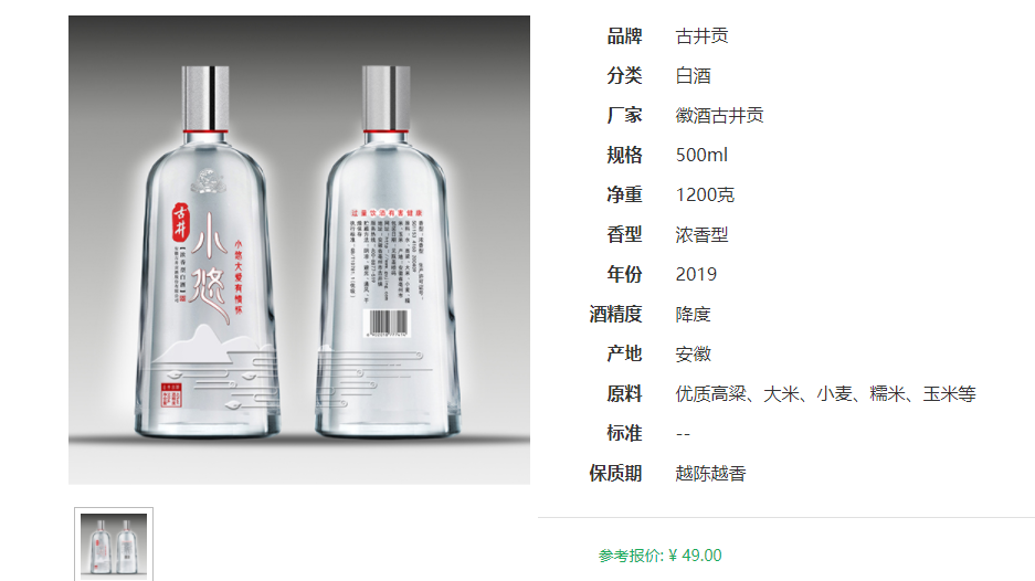 釀造工藝:古井小悠以精選優(yōu)質(zhì)高粱、大米、小麥、糯米、玉米為原料,汲取優(yōu)質(zhì)地下礦泉水,采用古井傳統(tǒng)的“老五甑”釀造工藝,經(jīng)過(guò)國(guó)內(nèi)頂級(jí)白酒大師精心調(diào)制而成??诟写枷汊?,包裝簡(jiǎn)單大方,適合中低端人群消費(fèi)。