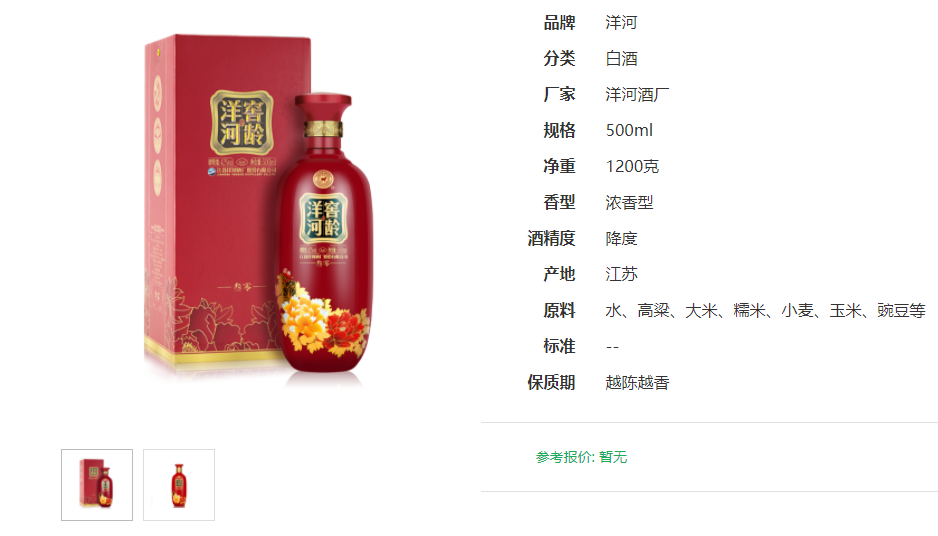 洋河窖齡30(叁零)42度口感綿柔濃香型白酒500ml一瓶的京東官方零售價(jià)格大概是暫無(wú)產(chǎn)品報(bào)價(jià)。洋河窖齡(叁零)42度怎么樣呢?接下來(lái)詳細(xì)給大家介紹。