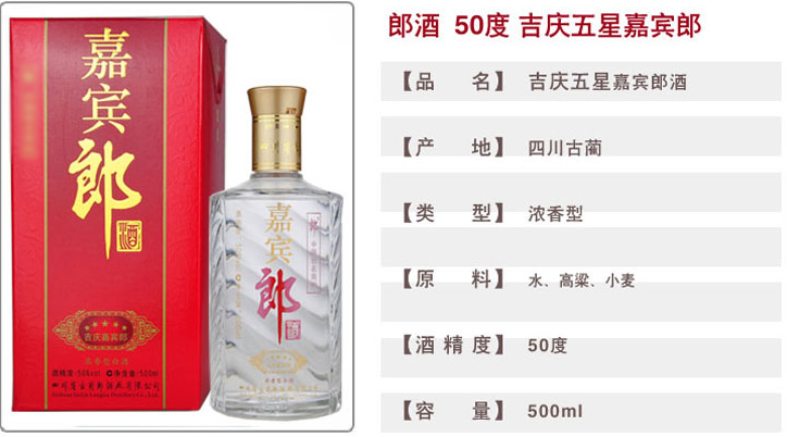 四川郎酒嘉賓郎五星口感濃香型50度白酒500ml單瓶裝