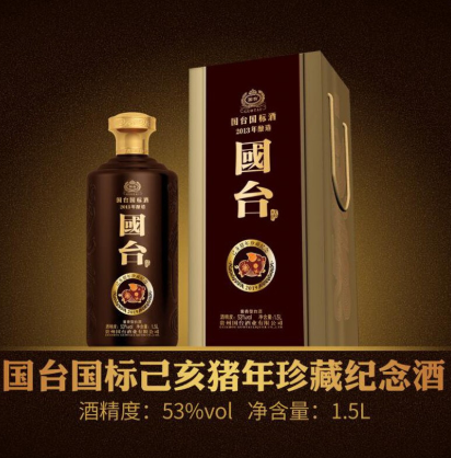 貴州國臺(tái)酒國標(biāo)己亥豬年珍藏紀(jì)念酒53度醬香型1500ml單瓶裝