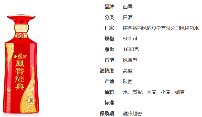 西鳳酒鳳香經(jīng)典10年52度鳳香型500ml單瓶裝