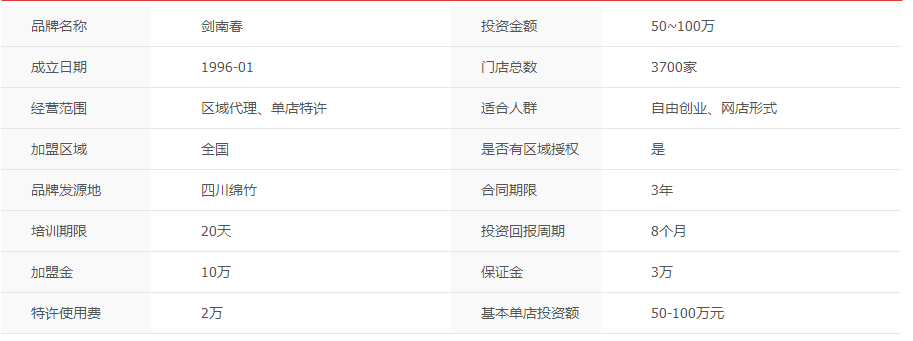 【劍南春代理加盟條件 劍南春加盟店要多少錢】相關(guān)推薦文章: