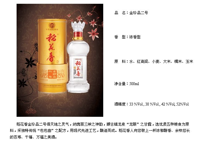 稻花香珍品42度500毫升(金珍品二號(hào))