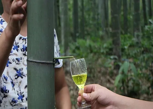 每年清明時(shí)節(jié),等到幼竹的筍衣退下之后,在竹子的節(jié)附近打一個(gè)小孔,分多次少量的用針筒把準(zhǔn)備好的酒灌進(jìn)去,再就地取材,用小木棍把孔封住,等待2個(gè)月-半年的時(shí)間,讓美酒和竹子一同成熟,滲入竹子的清香后,就到了采收階段,竹子砍下來(lái)進(jìn)行藝術(shù)加工,就成了原生態(tài)的酒瓶,酒杯和竹酒。