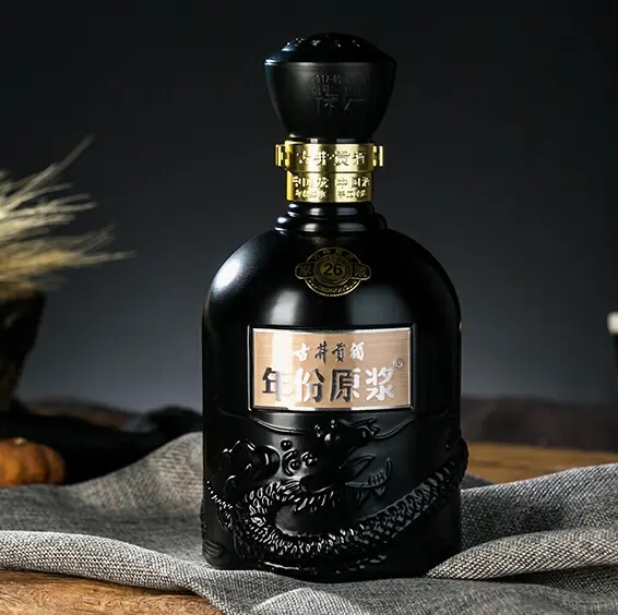 外盒采用定位紙材質(zhì),增加防偽功能;瓶身采用玻璃噴涂工藝,棕黑色,健康環(huán)保;瓶型似盤龍玉璽,古樸穩(wěn)重,寓意皇室貢品和權(quán)貴象征;瓶體烤花。