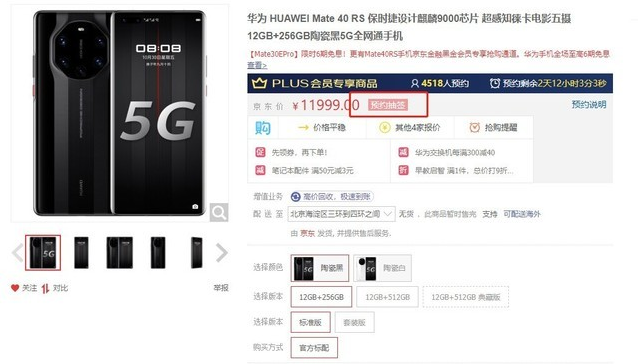 該版本和之前首發(fā)版本除了內(nèi)存容量與價格之外沒有區(qū)別。8GB內(nèi)存足以滿足99%的消費者,況且10999元的價格也是系列最低。如果能原價買到,8GB+256GB版本的華為Mate40 RS保時捷設(shè)計就很值。然而好消息來了,最近幾天它真的現(xiàn)貨了,陶瓷黑和陶瓷白兩個配色均已在官方網(wǎng)站和各大電商平臺現(xiàn)貨開售。