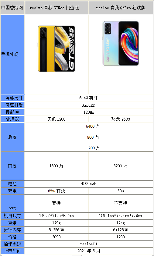 以上就是小編收集到的真我Q3Pro狂歡版和真我GTNeo閃速版差別在哪-參數(shù)對比分析的相關(guān)內(nèi)容,以上內(nèi)容均來源于網(wǎng)絡(luò),僅供參考,一切以實際為準(zhǔn),更多最新數(shù)碼資訊請關(guān)注香煙網(wǎng)。