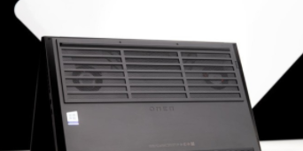 暗影精靈6的轉(zhuǎn)軸在機身C面的邊緣位置,這樣的設計不僅可以讓屏幕達到180°翻轉(zhuǎn)的效果,也沒有影響到出風口的設計。