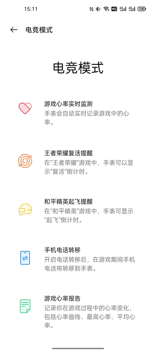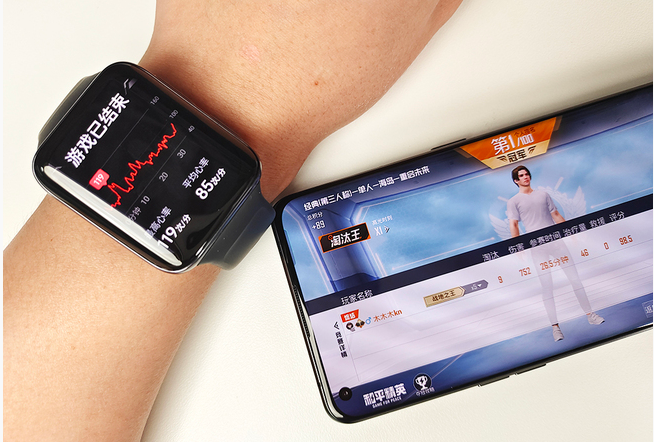 在電競模式下,可以讓用戶玩游戲時直接用手表接電話,免去了游戲被打斷的煩惱。同時還有游戲提醒,讓用戶及時返回游戲(王者榮耀為俘獲提醒,和平精英為起飛提醒),以及實(shí)時記錄游戲時的心率并融入戰(zhàn)報。