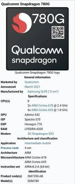 高通驍龍 780G 是首款獲得 Spectra 570 圖像信號處理器(ISP)的 7 系列處理器。ISP 可以同時支持三個不同的攝像頭。明顯的選擇是廣角、超廣角和長焦鏡頭。該芯片組可以在弱光條件下實現(xiàn)更好的照片質(zhì)量,并允許以 HDR 10 + 和 4K HDR 分辨率進行視頻錄制。