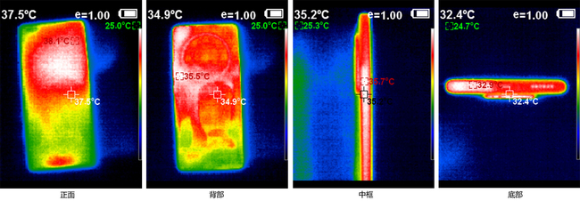實(shí)測(cè)上述游戲模式下,將近半小時(shí)游戲后,榮耀Magic3 Pro正面最高溫度達(dá)到38℃左右,背部35℃左右,正反面高溫區(qū)域都主要集中在機(jī)身上半部分,頂部溫度在35℃左右,底部在32℃左右,右側(cè)邊框溫度為35℃左右,左側(cè)中框在34℃左右。