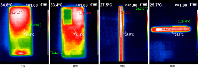 半小時游戲后,iQOO 8 Pro正面最高溫度36℃左右,背部最高溫度34.6℃,左右中框溫度在32℃左右,頂部溫度同樣為32℃左右,底部在30℃左右。
