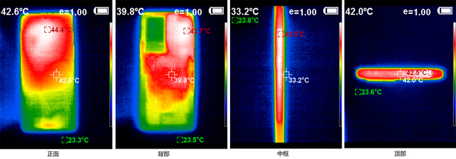 1小時《原神》后,iQOO 8 Pro正面最高溫度44.4℃,背部最高溫度42.7℃,頂部最高42.6℃,底部35.4℃,左右中款也達(dá)到了40℃左右。