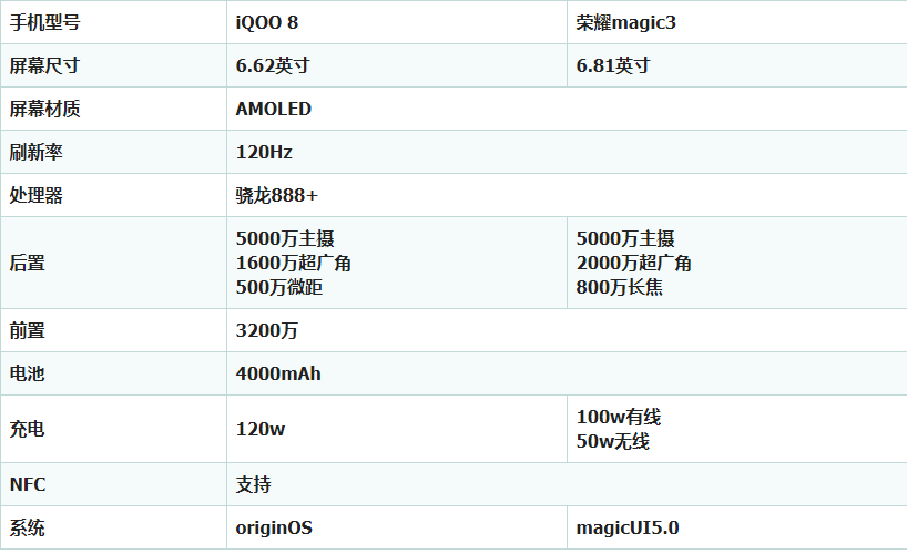 1、iqoo8和榮耀magic3不同點(diǎn)
