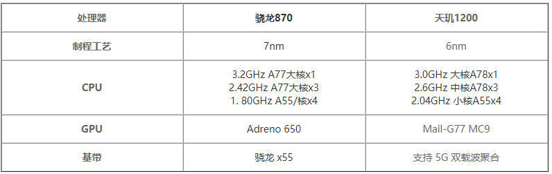 驍龍870搭載臺(tái)積電的7nm制作工藝,帶來(lái)很好的功耗性能體驗(yàn);天璣1200搭載臺(tái)積電的6nm制作工藝,是7nm的升級(jí)版本;