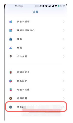 2、在設(shè)置中找到【更多】設(shè)置,點(diǎn)擊進(jìn)入;