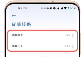 5、背部輕敲可以敲兩下或者三下,選擇任意一個(gè),點(diǎn)擊右側(cè)的設(shè)置;