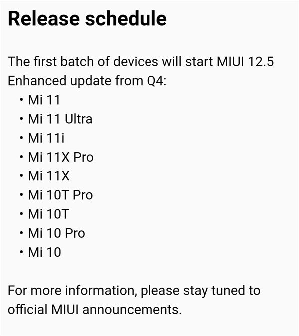 首批將于第四季度開(kāi)啟MIUI 12.5增強(qiáng)版更新。