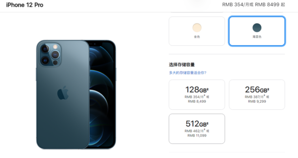 眾所周知,不同存儲(chǔ)版本iPhone的價(jià)格差距十分之大,以蘋果iPhone 12 Pro的官方價(jià)格為例,128GB版售價(jià)8499元,256GB版售價(jià)9299元,512GB版售價(jià)11099元,128GB版與512GB版有著2600元的差價(jià)。
