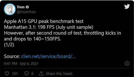 據(jù)報(bào)道,Manhattan 3.1 GPU 基準(zhǔn)測(cè)試顯示,A15芯片在第一輪測(cè)試中達(dá)到了198FPS,接近200幀。不過(guò)第二輪測(cè)試得分大約是140FPS~150FPS之間。