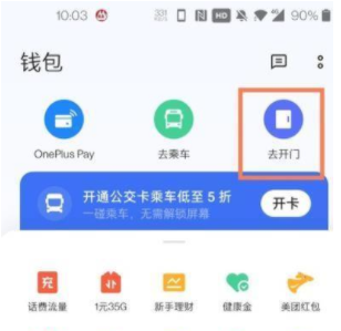 1、打開(kāi)錢包app,在首頁(yè)點(diǎn)擊【去開(kāi)門(mén)】